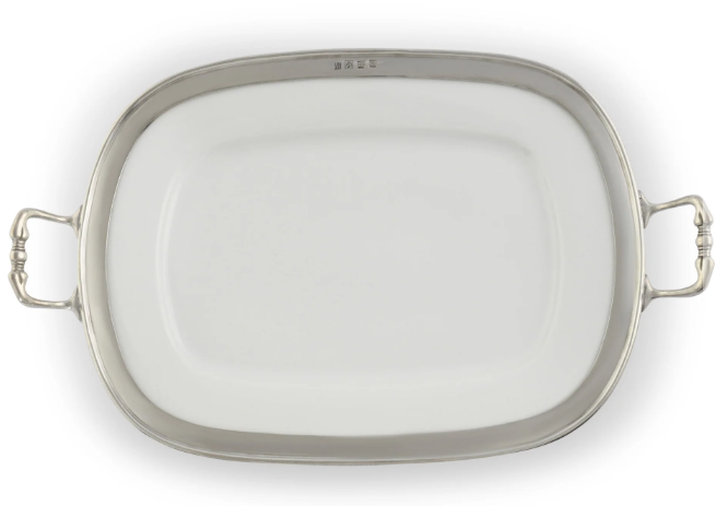 Beautifully versatile and refined, the Vagabond House Rectangle Tray in Porcelain with Handles makes a striking addition to your serveware collection. Crafted from high-quality porcelain with elegant integrated handles, this rectangular tray is perfect for serving appetizers, desserts, or hors d’oeuvres with style. Its classic design brings effortless sophistication to casual gatherings and formal occasions alike.